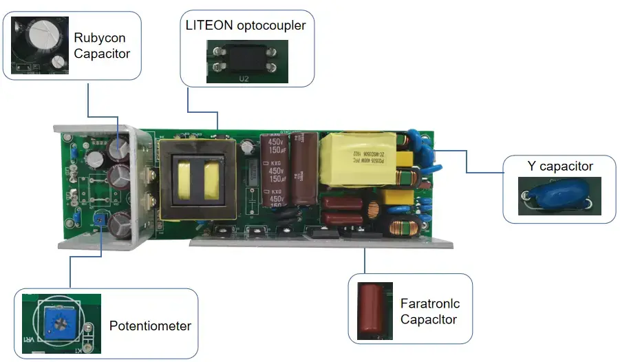 Hassas Sabit Akım · Uzun Ömürlü Dayanıklılık: STARWELL sabit akım triyak kısılabilir LED sürücüsü, yüksek hassasiyetli bir sabit akım çipini benimser. Çıkış akımı hatası ≤ ±%3, çıkış akımı 1200mA'da sabittir ve titreşim derinliği <%5'tir, böylece titreme ve ışık zayıflaması sorunları ortadan kalkar. LED aydınlatma armatürlerinin servis ömrünü %30'dan fazla uzatabilir ve sürekli çalışma ömrü 50.000 saate ulaşabilir, böylece değiştirme ve bakım maliyetleri önemli ölçüde azalır.