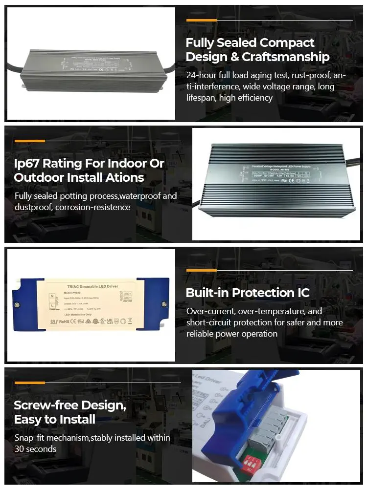 STARWELL yüksek kaliteli 1200mA Sabit Akımlı Su Geçirmez LED Sürücüsü, dış mekan/nemli ortamlardaki LED aydınlatma armatürleri için özel olarak tasarlanmıştır ve 10-40W sokak lambaları, bahçe lambaları, su altı ışıkları, reklam ışıklı kutuları ve diğer çoklu senaryolarla uyumludur. Yüksek hassasiyetli bir sabit akım çipini benimseyen çıkış akımı hatası ≤±%3'tür, 1200mA'da doğru ve istikrarlı bir şekilde korunur, temel olarak titremeyi (titreşim derinliği <%5) ve ışık azalması sorunlarını ortadan kaldırır, bu da LED armatürlerin servis ömrünü %30'dan fazla uzatabilir; IP67 su geçirmez sızdırmazlık teknolojisi + su geçirmez çömlek teknolojisi ile donatılmış olan su geçirmezlik seviyesi, su altında 1 metrede 30 dakika boyunca hiçbir sızıntıya ulaşmaz; yağmur, sıçrayan su ve toz gibi zorlu ortamlarla baş edebilir, 50.000 saatten fazla dış mekanda sürekli çalışma ömrüne sahiptir, bu da onu uzun süreli kullanım için daha güvenilir hale getirir.