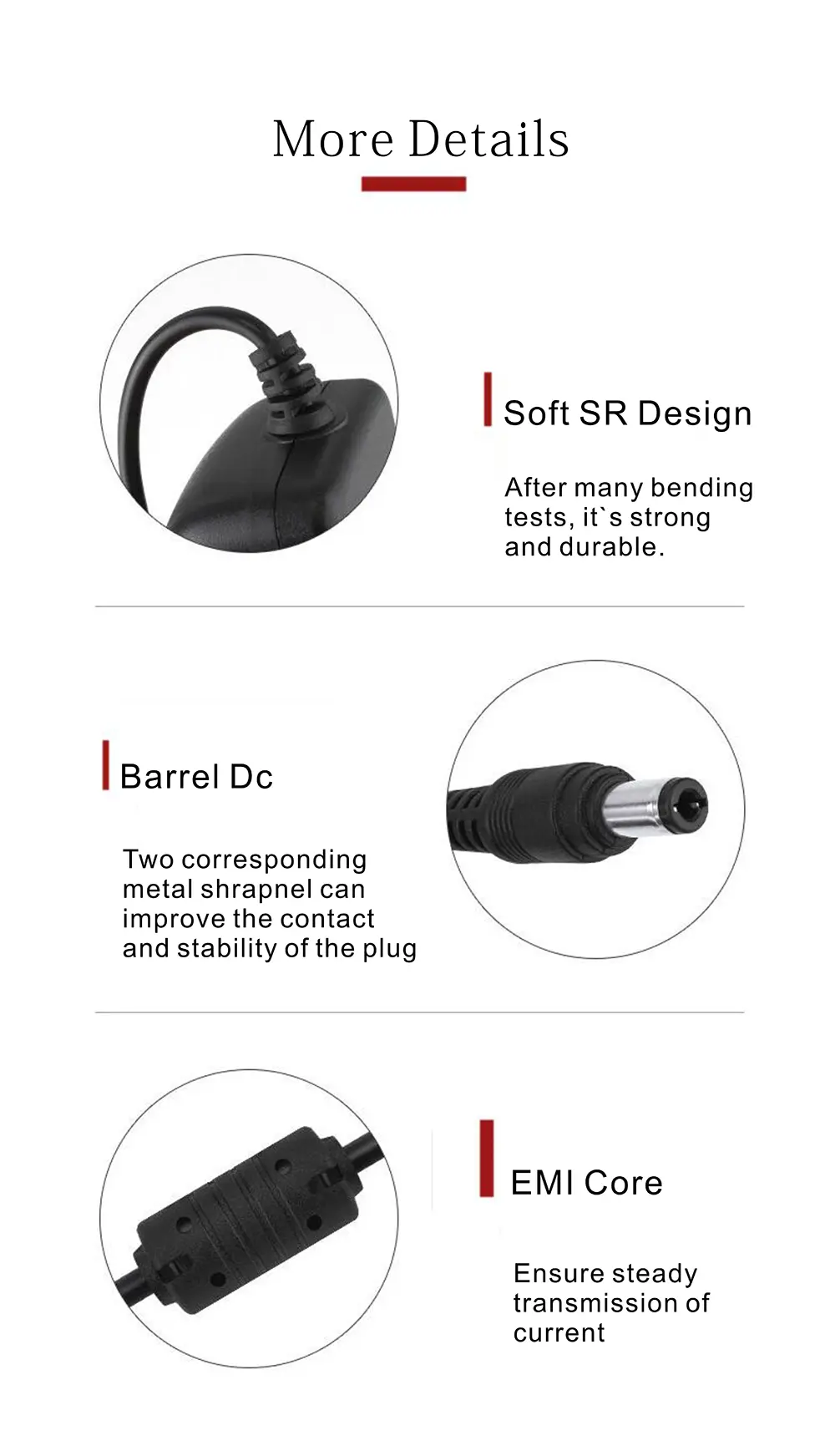 3. Konektörün Uygunluğu: Fişin boyutunun (ör. 5,5 mm x 2,1 mm) ve polaritesinin (genellikle merkez pozitif) cihazınızın DC jakıyla eşleştiğini doğrulayın. Bir uyumsuzluk hasara neden olabilir.