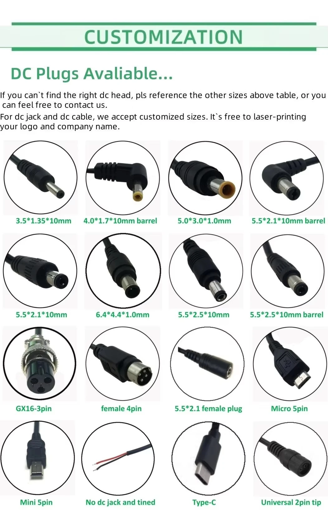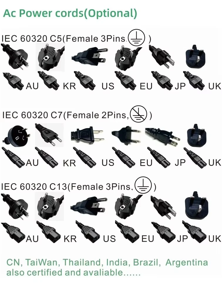 Bu çok yönlü 72W adaptör aşağıdaki güç kaynaklarına uygundur: