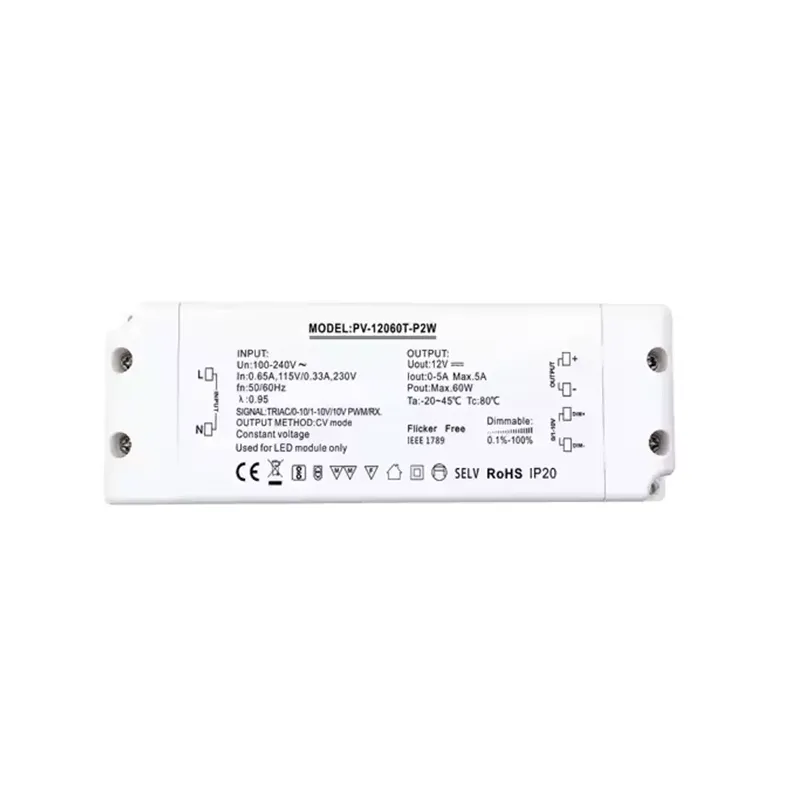 Kararlı bir Sabit Voltaj Güç Kaynağı Triyak karartma led sürücüsü olarak, sabit 12V DC voltaj çıkışı sağlar. Bu 12V 30W triyak kısılabilir güç kaynağı, yüksek kaliteli bileşenleri ve gelişmiş devre tasarımını benimseyerek, tüm karartma aralığı boyunca istikrarlı çıkış voltajı sağlar ve ışıkların titremesini temel olarak ortadan kaldırır. İç mekan kullanımı için gerçekten titreşimsiz bir triyak karartma led sürücüsüdür. Titreşimsiz özelliği konforlu ve sağlıklı bir görsel ortam yaratmanın yanı sıra hassas LED ışık kaynaklarını ve modüllerini etkin bir şekilde koruyarak aydınlatma armatürlerinin genel ömrünü uzatır.