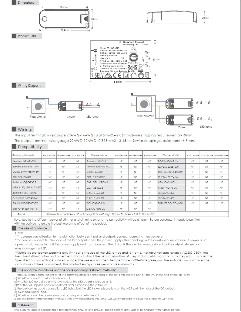 Yüksek kaliteli PE294R 42V maksimum 200ma sabit akım triyak karartma led sürücüsü, Çin üreticisi Starwell tarafından yüksek güç faktörü, yüksek verimlilik, yüksek hassasiyet, verimli çalınabilir düşük kayıplı anahtar kontrol çipinin kullanımı ve yüksek performanslı bileşenlerin kullanımı ile Çin üreticisi Starwell tarafından geliştirilen sabit akım karartma LED dalgıcından biridir ve yüksek performanslı bileşenler, düşük gürültülü, uzun ömürlü ve diğer özelliklerle öne çıkar.