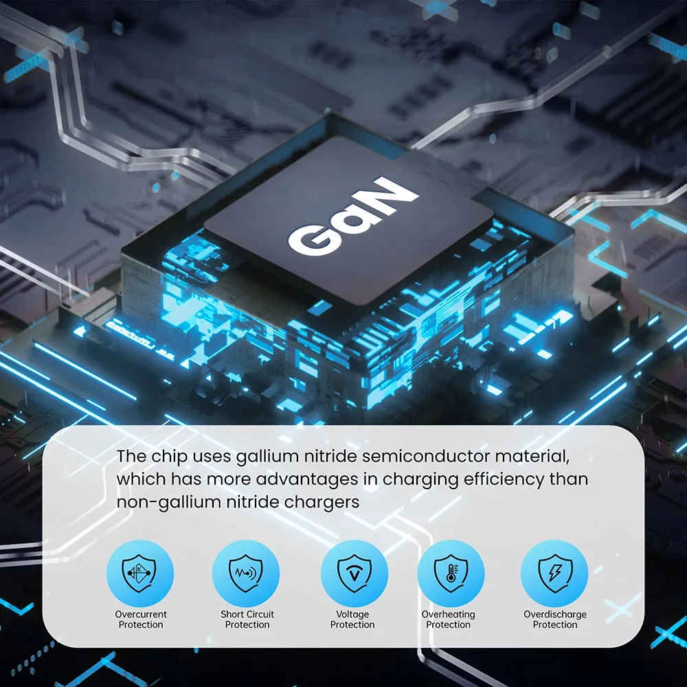 Geri çekilebilir tip c Kablolu 45W AB AC Fişli PD Şarj Cihazı Gelişmiş Güvenlik Özellikleri: