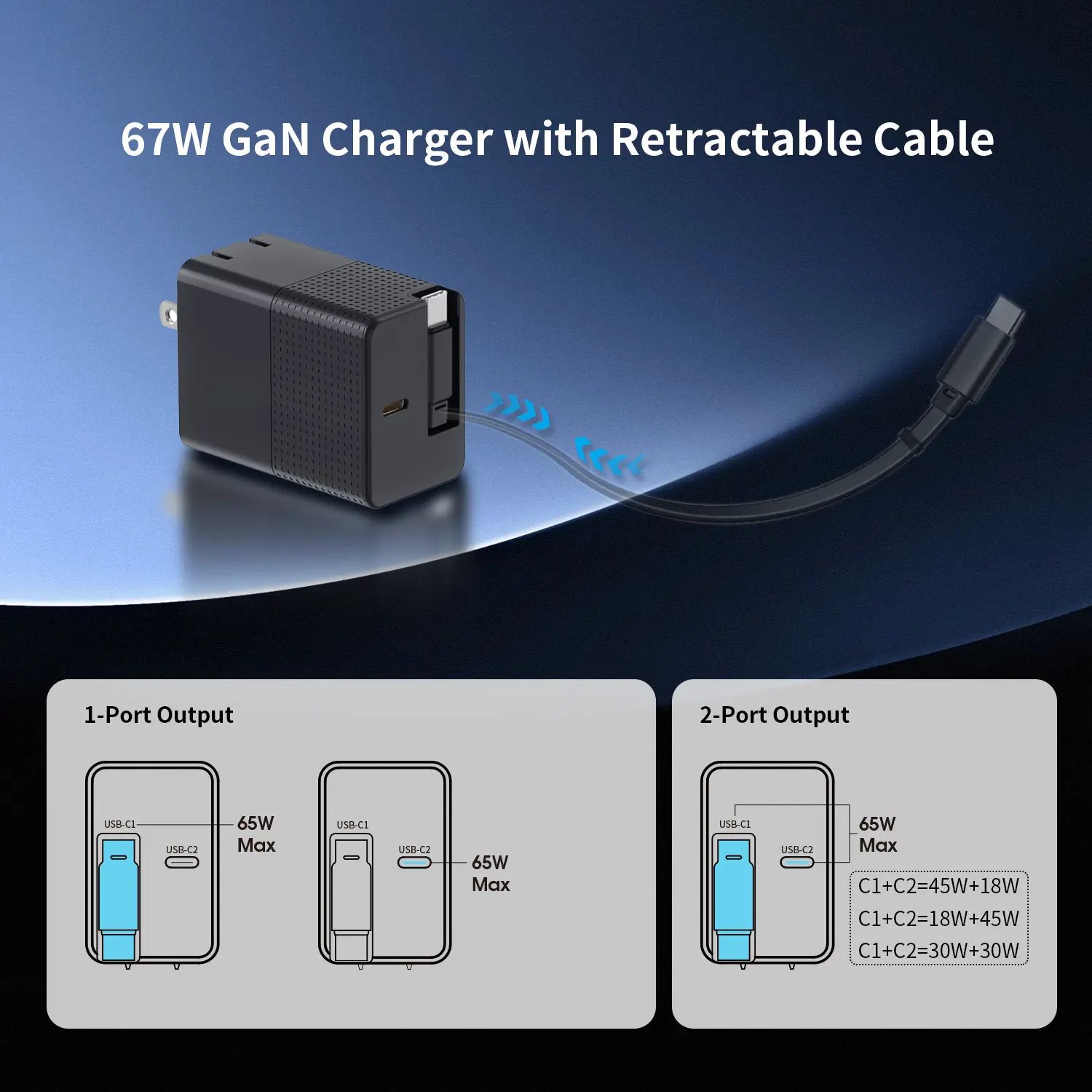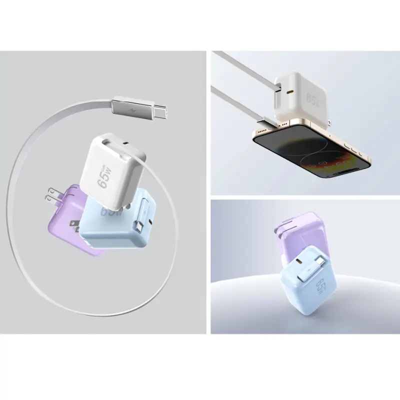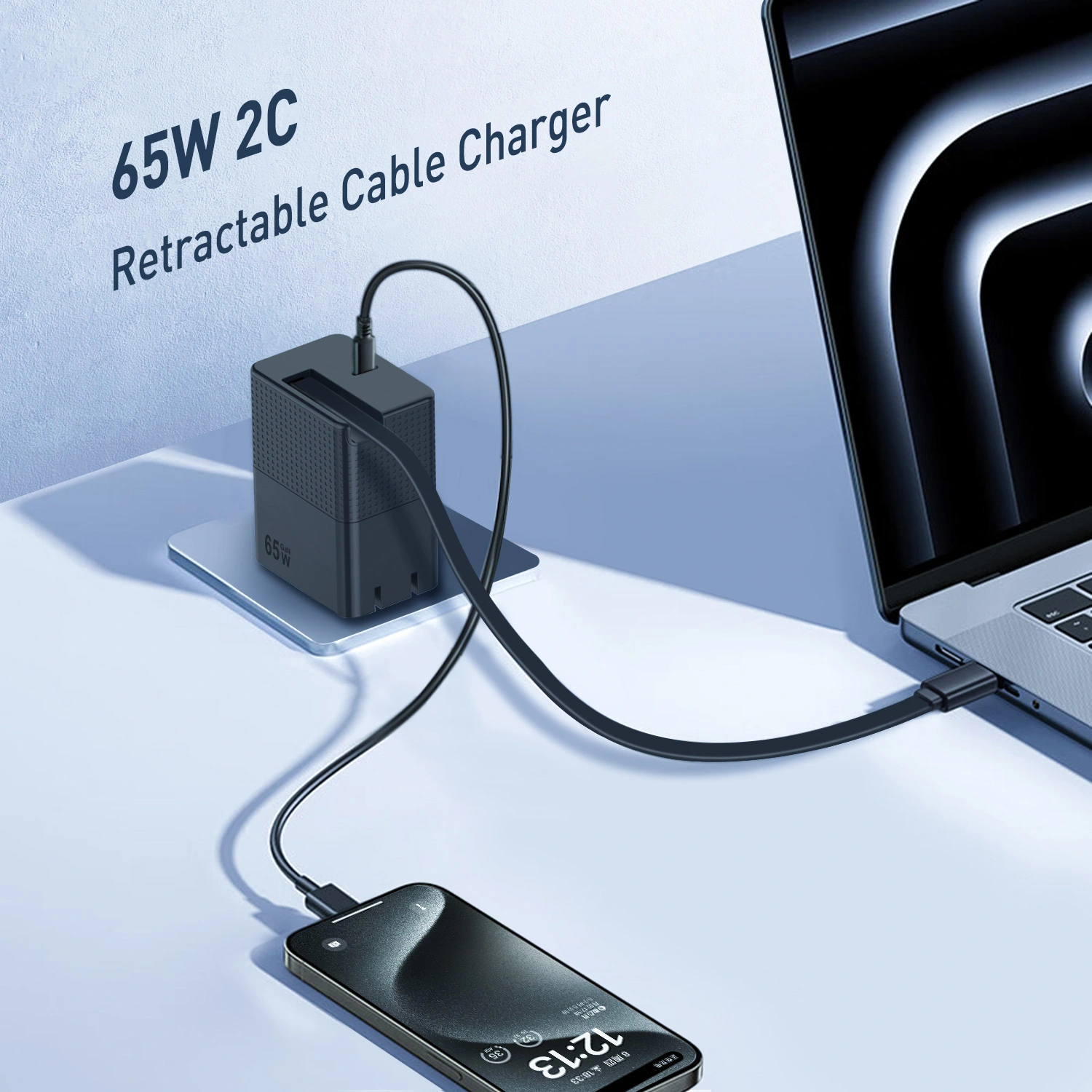 Çekilebilir USB Kablosu ile 65W PD Şarj Cihazı |