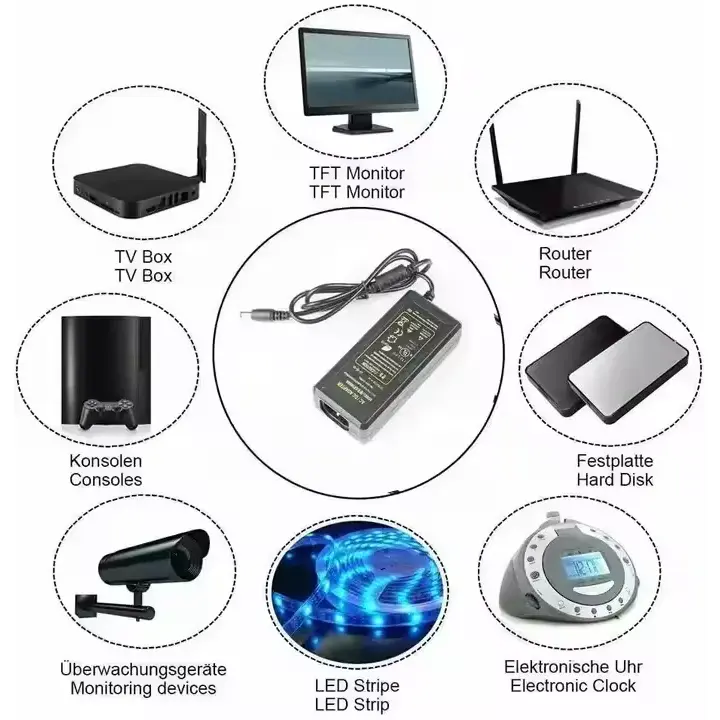 Masaüstü bilgisayarlar, endüstriyel kontrol sistemleri, tıbbi cihazlar ve yüksek güçlü çevre birimleri gibi çeşitli ekipmanlarla uyumlu olan bu adaptör, hem profesyonel hem de kişisel uygulamalar için çok yönlü ve güvenilir bir güç çözümü sunar.