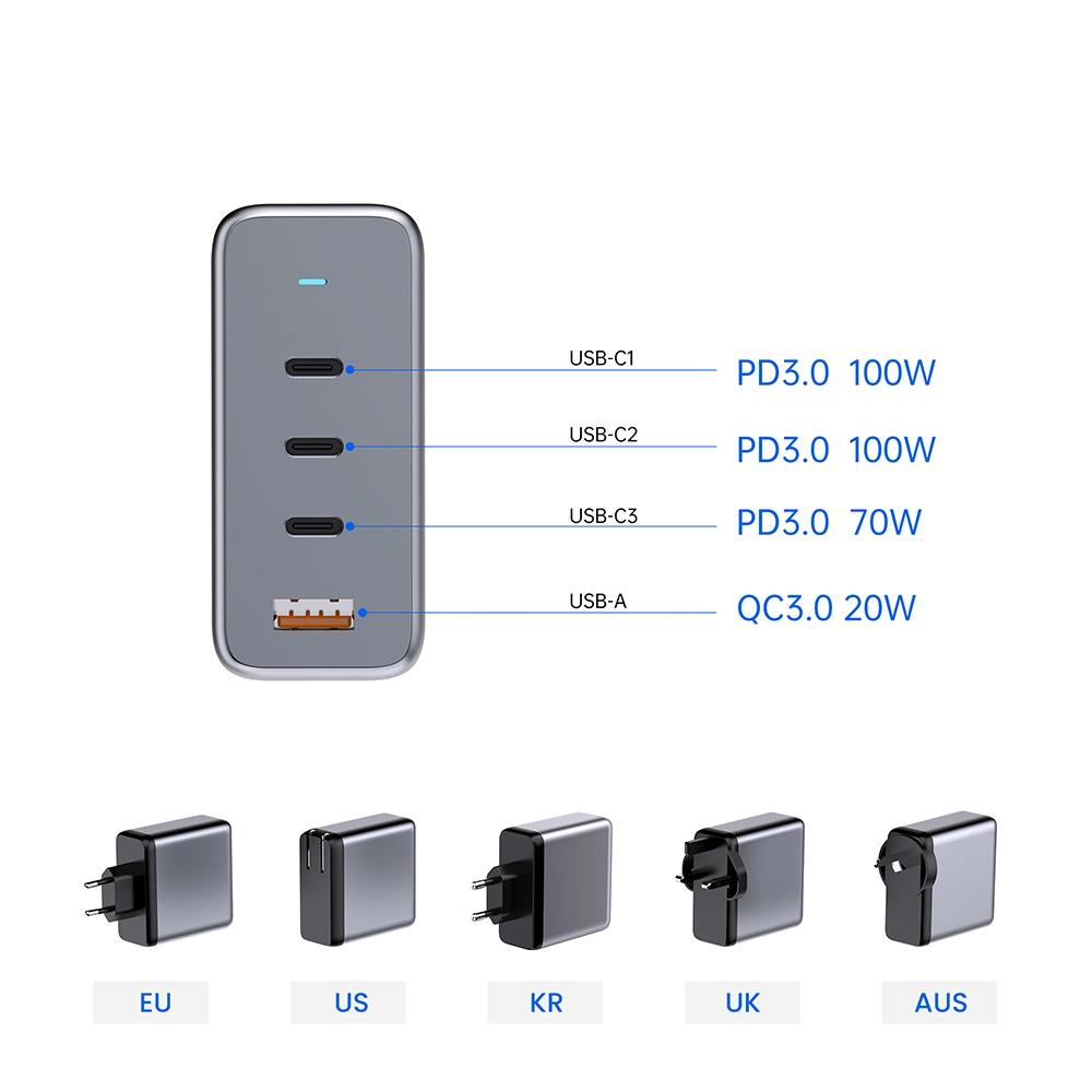 Dizüstü bilgisayar için GAN 100W Hızlı Şarj Cihazı CE Çalışma alanınızı düzenli ve düzenli tutmak için birden fazla cihazı aynı anda hızlı bir şekilde şarj edin. Starwell'in dayanıklı GaN 100W hızlı şarj cihazı, üç USB-C bağlantı noktası ve bir USB-A bağlantı noktasıyla donatılmıştır ve aynı anda dört cihaza kadar güç sağlamasına olanak tanır. İster iş ister ev kullanımı olsun, görevleri kolaylıkla yerine getirebilir. Dizüstü bilgisayarınızdan, cep telefonunuza, tabletinizden akıllı saatinize kadar her şey bir arada tam olarak şarj edilebiliyor ve sonunda priz işgali çağı sona eriyor. Bu, masanıza sadelik ve yüksek verimlilik getirir.