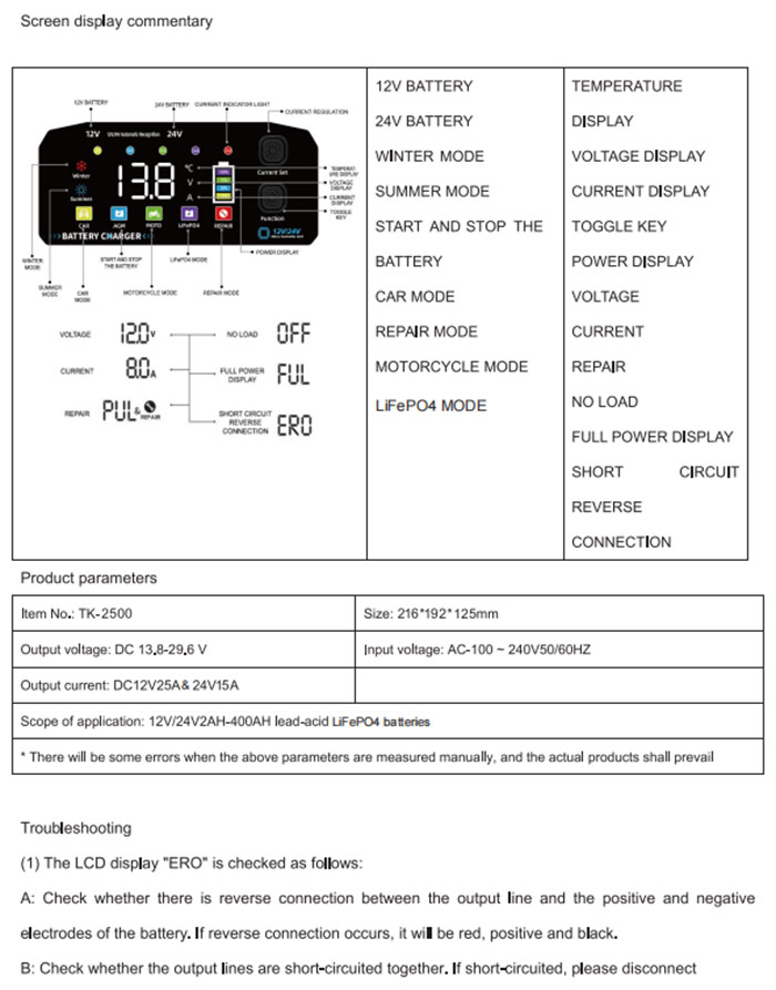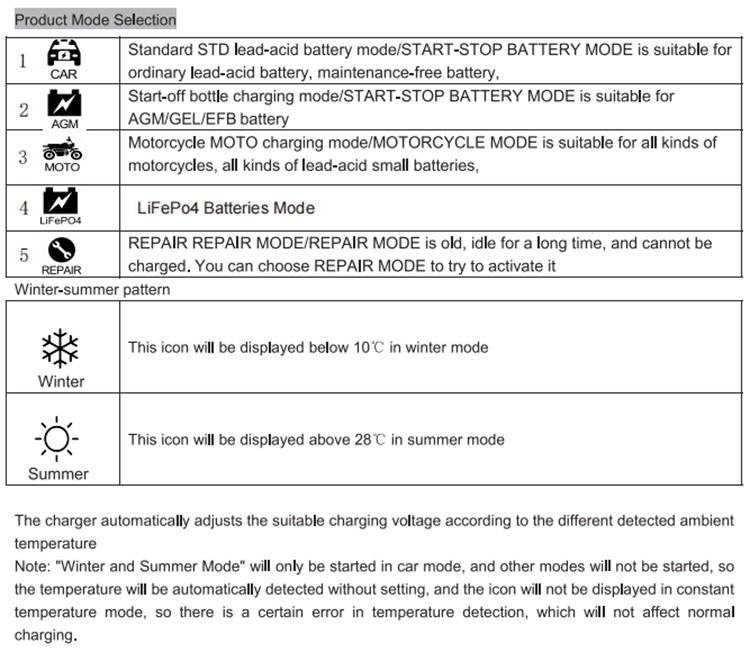 Geniş Pil Tipi Desteği: Standart Sulu (Islak), AGM (Emici Cam Mat), Jel ve Kalsiyum piller dahil olmak üzere çeşitli pil kimyalarıyla uyumlu olup, her özel tür için en uygun şarjı sağlar.