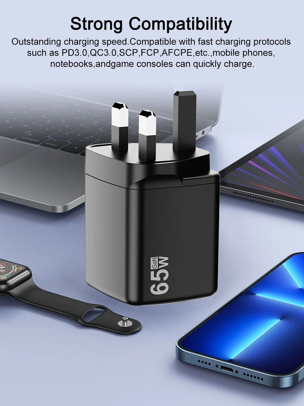 İngiltere fiş tipi 65w hızlı şarj cihazı |